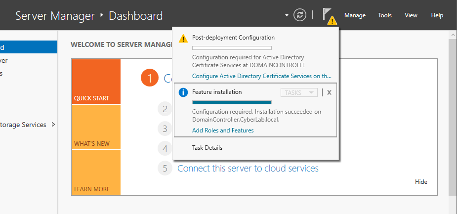 In Server Manager, navigate to Active Directory Users and Computers > CyberLab.local > Computers&#x20;