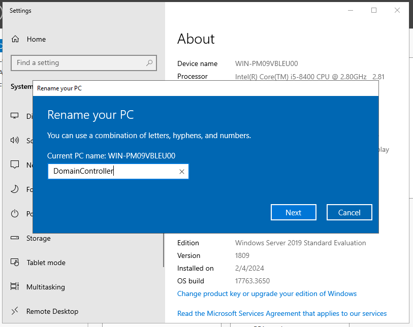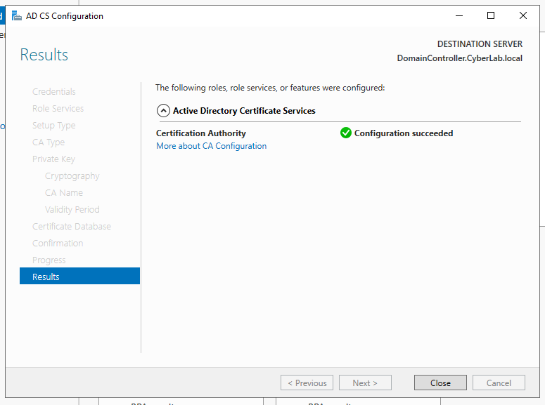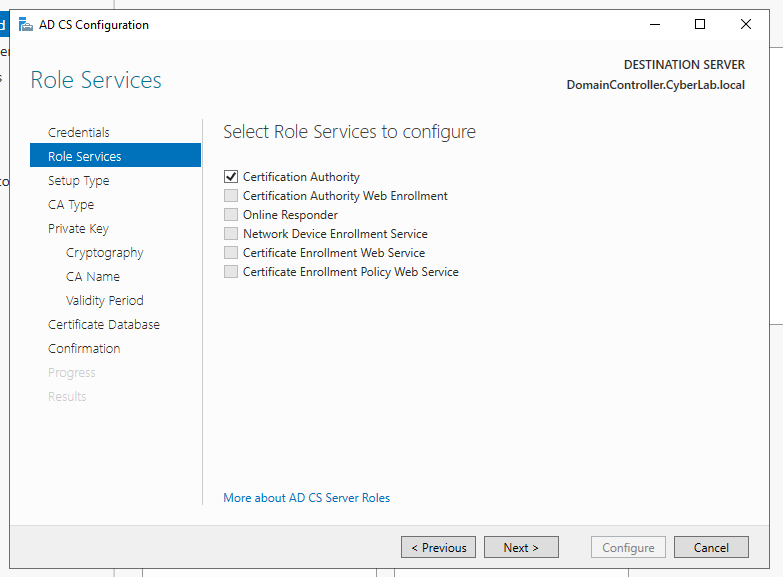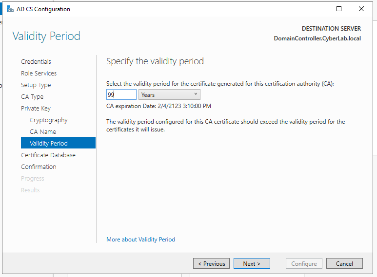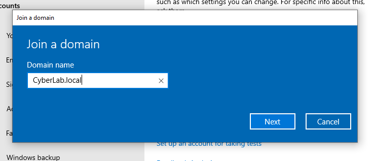 Enter the domain name that was set in the domain controller (CyberLab.local).