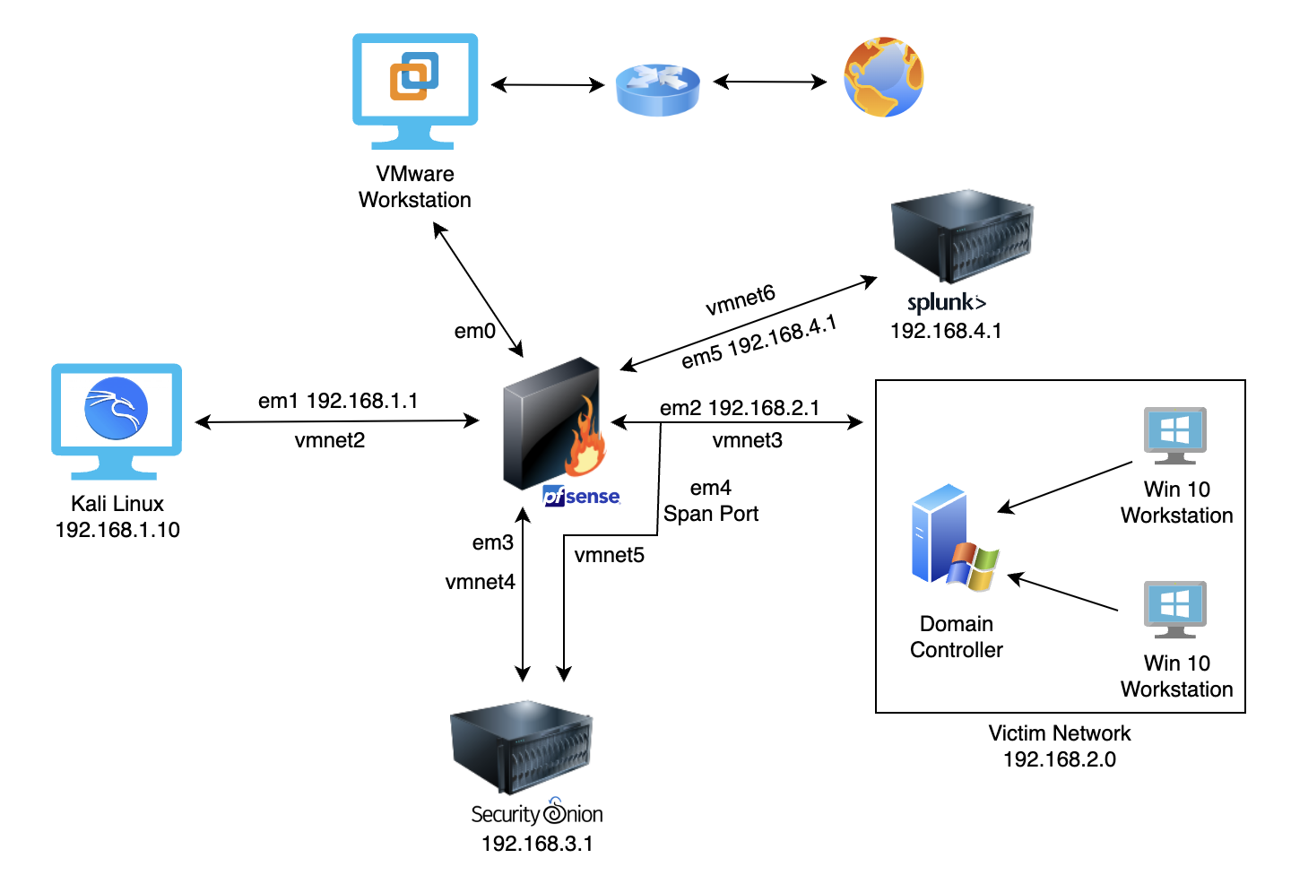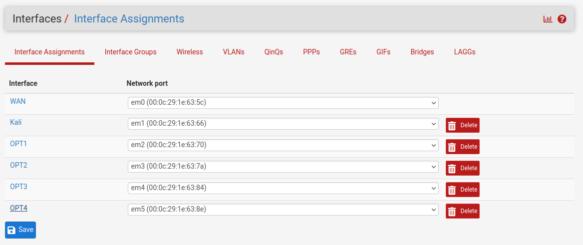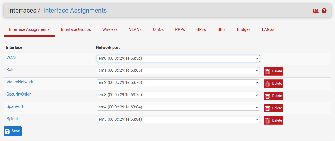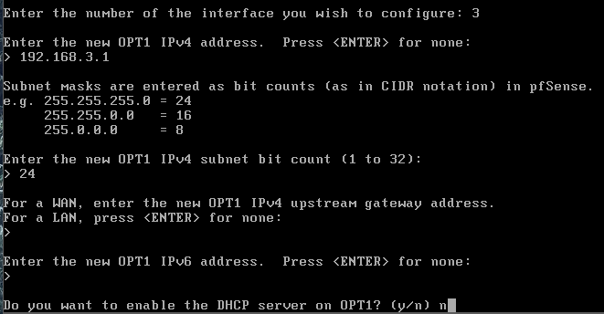 \*Note: OPT3 will not be assigned an IP address since it will have a span port for Security Onion.