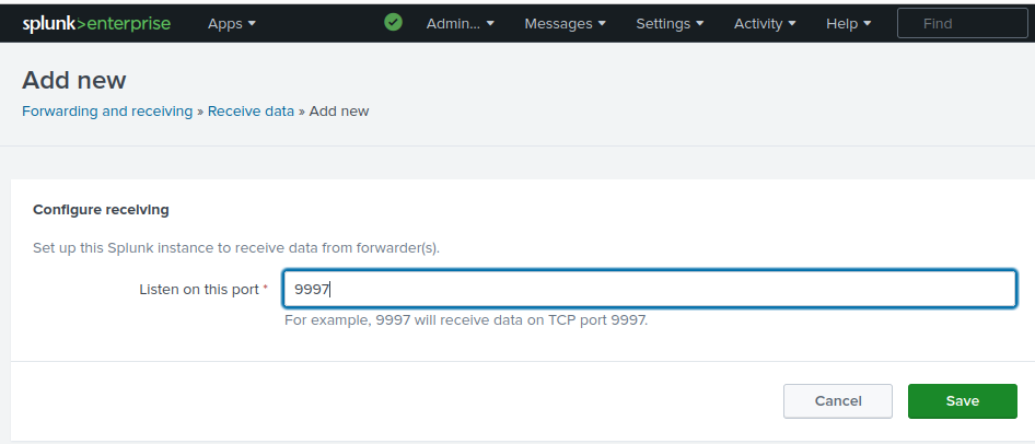 From Splunk home screen, navigate to Settings > Forwarding and receiving&#x20;