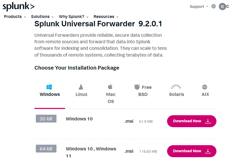 Download the Splunk Universal Forwarder for Windows below: